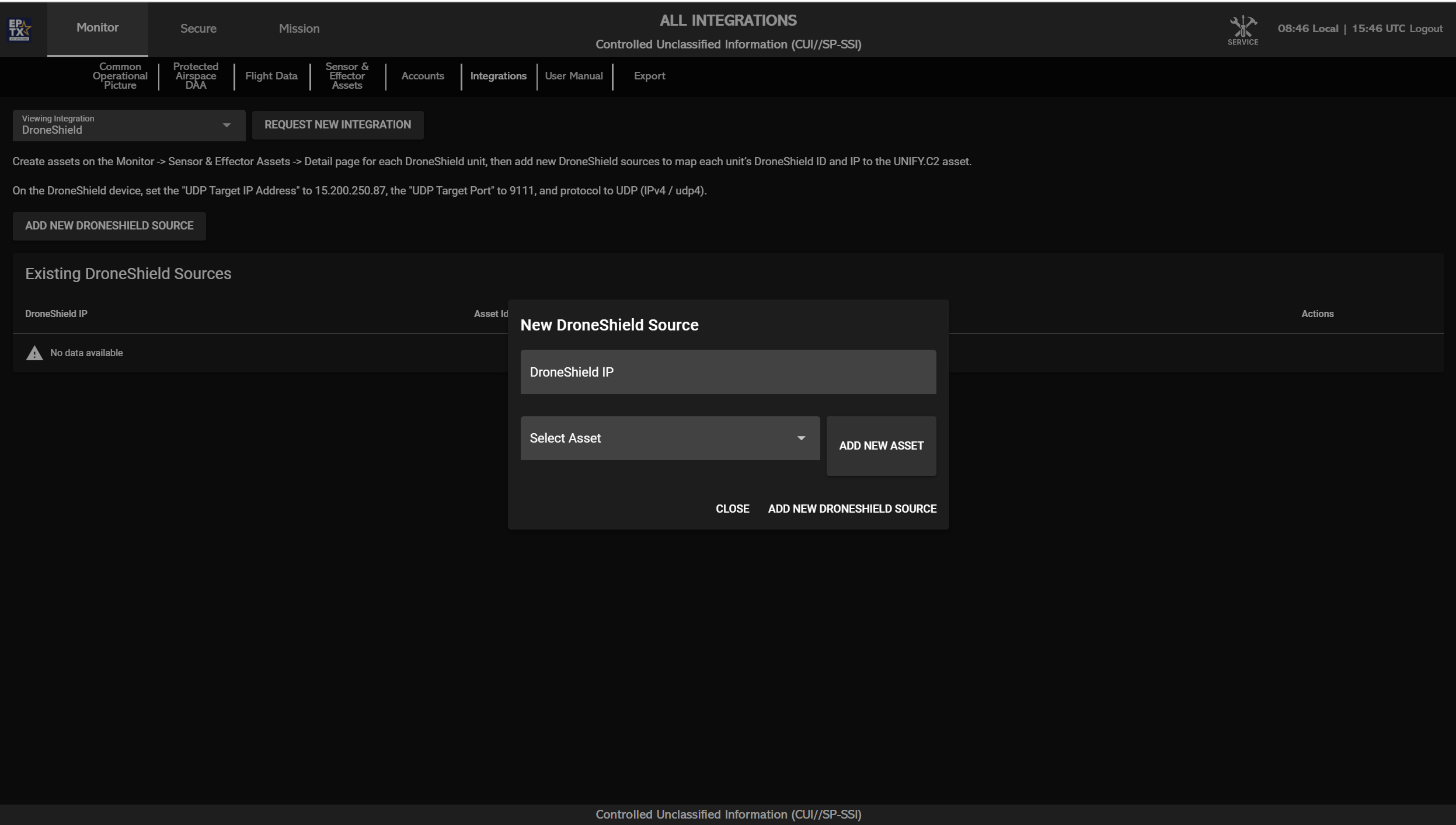 The Ingest DroneShield tab allows users to configure and manage inbound data from DroneShield sensors.